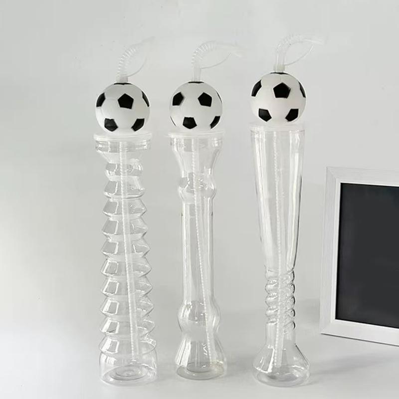 Football Water Bottles Sipper Cups For Milk Tea Coffee Juice Portable Transparent Straws Juice Mug For Birthday Party Fan Bar