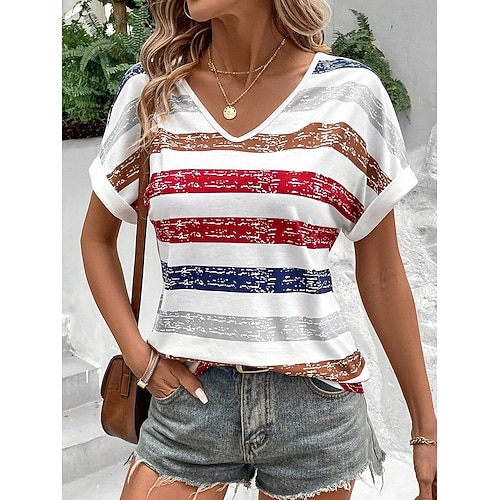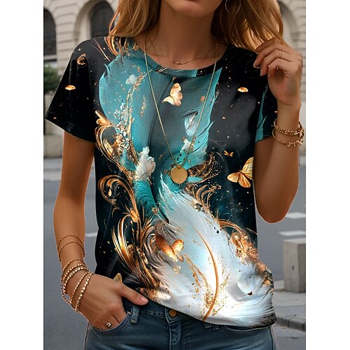 maglietta da donna casual stampa manica corta top regolari quotidiano rosa blu estate