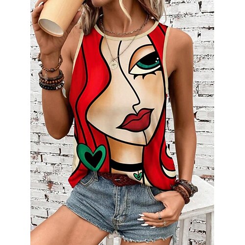 Per donna Pagliaccetto Attivo Grafico Senza Maniche Bottoni Vacanza Streetwear Vestibilità comoda Bianco Giallo Rosa Estate