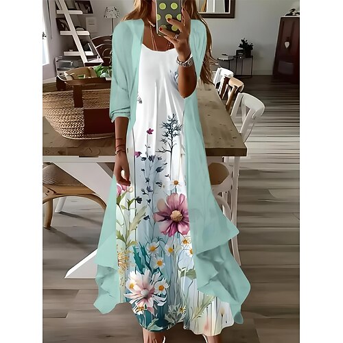 vestito midi girocollo con stampa grafica da donna bohémien casual casa appuntamento senza maniche estate