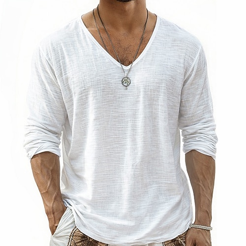 Da uomo Maglietta Camicia a Maniche Lunghe Maglietta in lino Manica Lunga Scollo a V Estate Primavera Primavera Estate Tinta unica Semplice Quotidiano Casual Stile da Strada Puro All'aperto