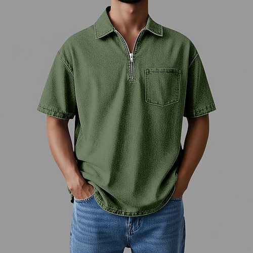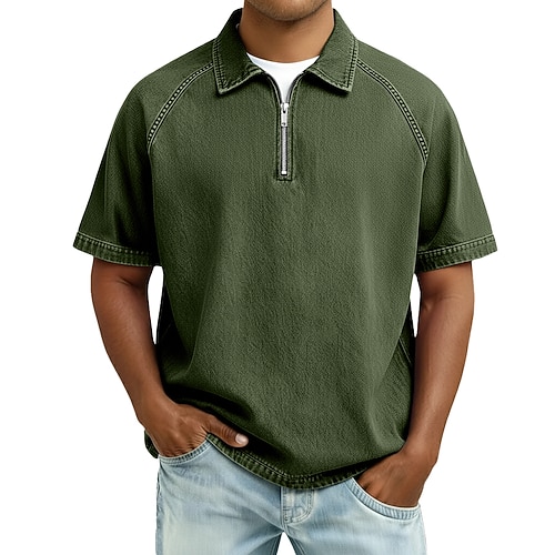 Da uomo Polo con zip Maglietta di cotone Manica Corta Zip a un quarto Estate Primavera Primavera Estate Semplice Moda Essenziale Moderno Cerniera Tasca Abbigliamento quotidiano Data Weekend Nero