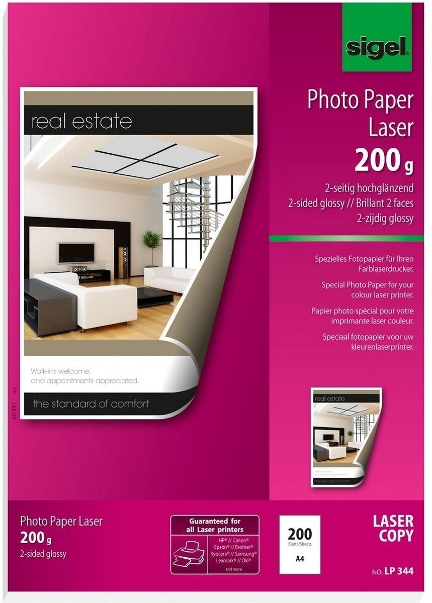 Sigel Photo-Papier für Farb-Laser/-Kopierer A4 200g/qm 200 Blatt 2seitig glossy Packung mit 7 Stück