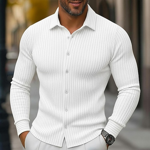 Per uomo Camicia elegante Camicia non stiro Camicia con Colletto Camicia con Bottoni A righe Matrimonio Lavoro A D G H Manica Lunga Colletto Primavera Autunno Abbigliamento Bottonato