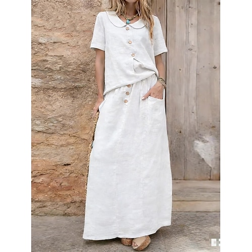 Per donna Set di gonne Bolero Top Manica Corta Colletto a Camicia Tinta unica Elegante Moda Streetwear Casuale Quotidiano All'aperto Nero Bianco Giallo Estate Vestibilità comoda