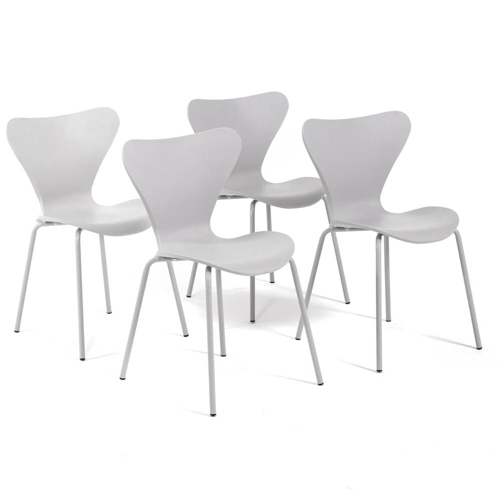 RATTATAN Set aus 4 Innenstühlen aus Polypropylen, Metallbeine mit Holzoptik, stapelbar, ideal für Bar, Restaurant oder Küche – Nina – Hellgrau