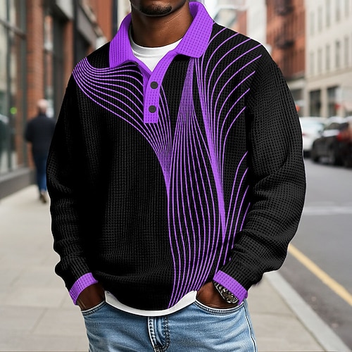 Per uomo Geometrico Linea Magliette Polo a Nido d'Ape Manica Lunga Magliette polo Camicie con Colletto Business Casual Affari Abbigliamento da lavoro Abbigliamento quotidiano Bottoni Primavera