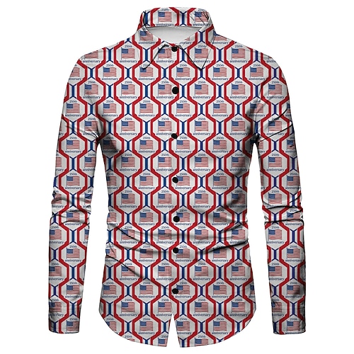 Americano 250 Retrò Vintage Anni '70 Camicia Camicia Aloha Lunghe Hippie Geometrico Etnico Costume Per uomo Mascherata 4 Luglio Feste Giorno dell'Indipendenza Semiquincentenario Adulti Camicia