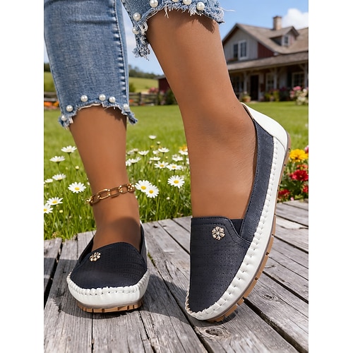 scarpe slip-on marroni con ricami floreali per donna – comode ballerine casual con suola antiscivolo per l'uso quotidiano