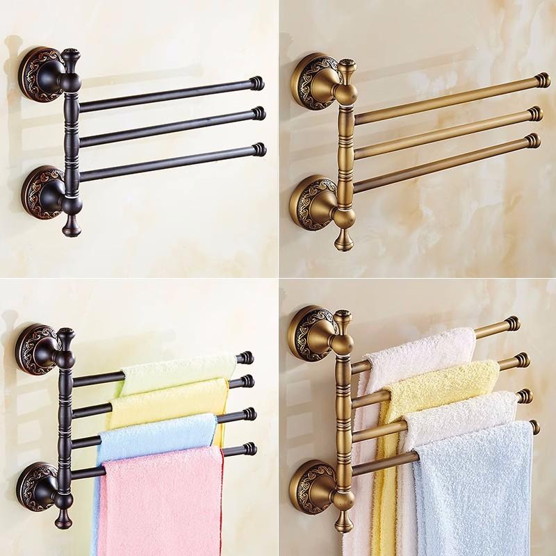 Handdukshållare i antik mässing för badrum, väggmonterad, svart koppar svängbar handduksställshållare, 3 armar, 4 armar svart
