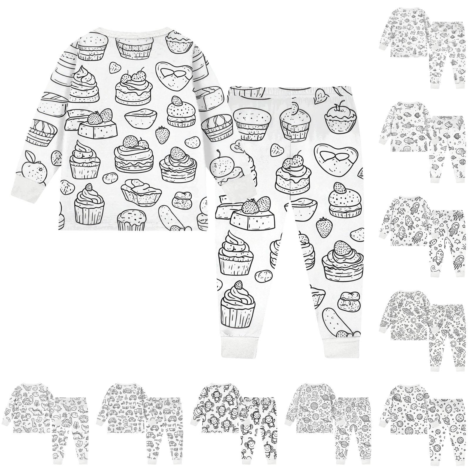 Barn Färgläggningsbara Byxset Pojkar Flickor Roliga DIY Handmålade 2-delade Outfits Tecknad Målar Klädset cm svart