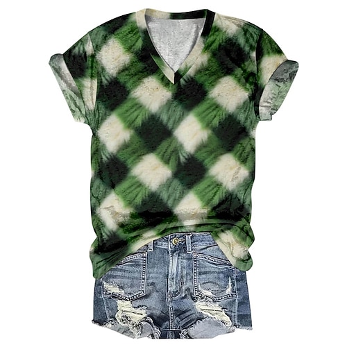 Giorno di San Patrizio Festa di San Patrizio Per donna Maglietta Trifoglio Moda Manica Corta Scollo a V Top Regolari Casuale Giorno di San Patrizio Stampato Verde primavera Verde chiaro Verde