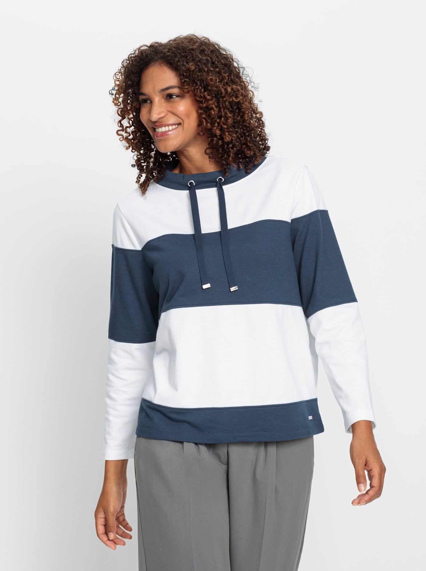 Sweatshirt CASUAL LOOKS, Damen, Gr. 40, blau (ecru, dunkelblau), 50% Baumwolle, 50% Polyester, gemustert, gestreift, mehrfarbig, Langarm, Sweatshirts