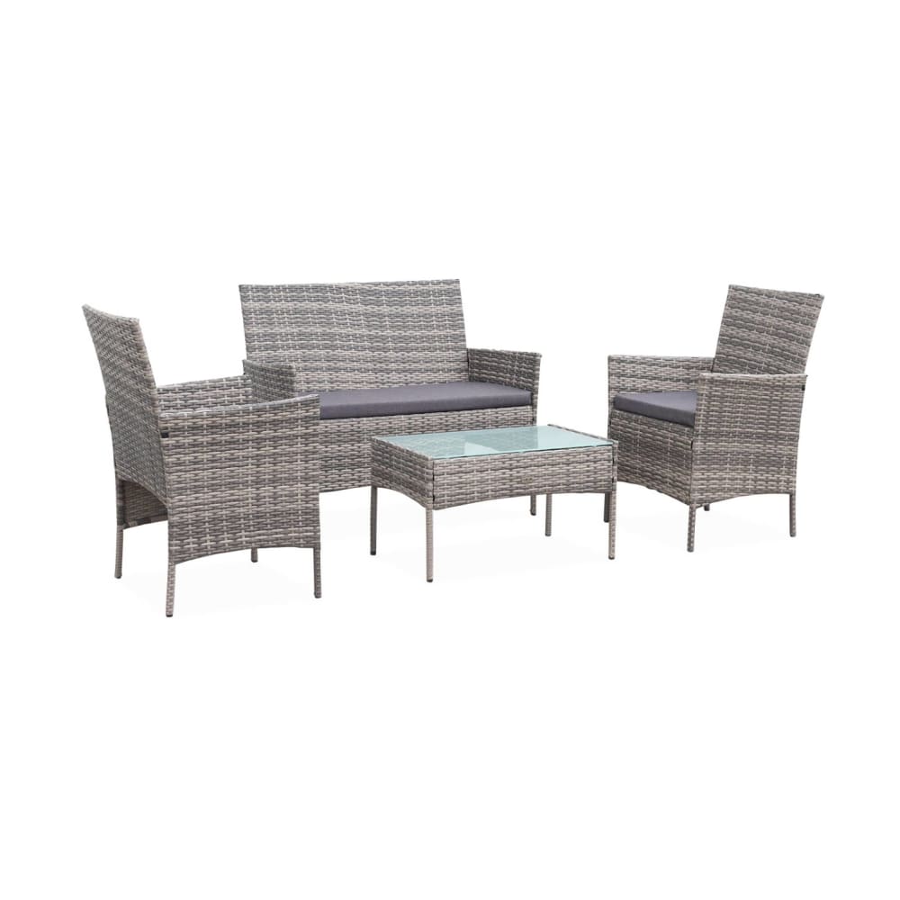 Salotto da giardino in resina intrecciata, 4 posti, scala di grigi