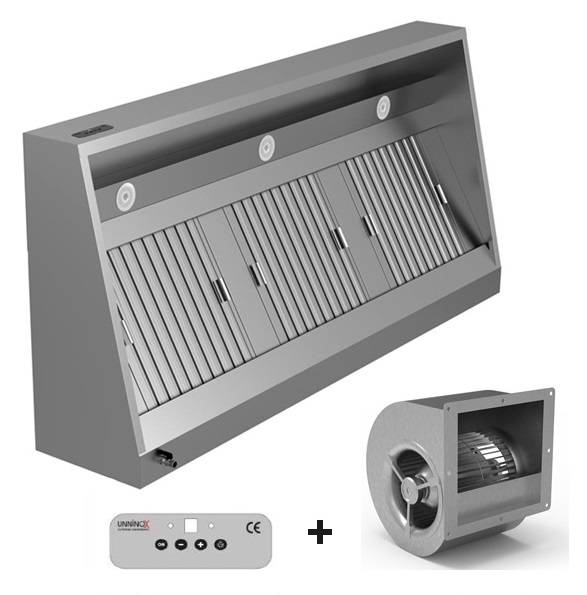 Edelstahl Wandhaube Pro Schrägform mit Motor 2000 x 950 x 520 mm