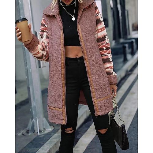 Per donna Cappotto Invernale Cappotto Teddy Caldo Confortevole Patchwork Cerniera Tasca Casual Blocco di colori Vacanza Streetwear Casuale Abbigliamento quotidiano Lungo Collo ripiegato Vestibilit