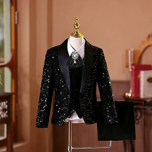 Completo da paggetto Ragazzi Bambini Abito Blazer, gilet, pantaloni, camicia e cravatta Casuale All'aperto Feste Moda Cool Essenziale Tinta unica Paillettes Tasca Bottoni Blu marino Poliestere