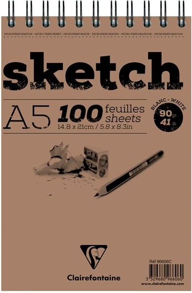 Clairefontaine Skizzenblock A5, 90g, 100 Blatt blanco, Spirale an kurzer Seite
