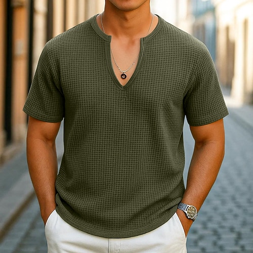 Per uomo Maglietta a Maglia Waffle Maglietta Manica Corta Girocollo Estate Tutte le stagioni Blocco di colori Testurizzato Moda Designer Casual Bottoni Base All'aperto Casuale Quotidiano Esercito