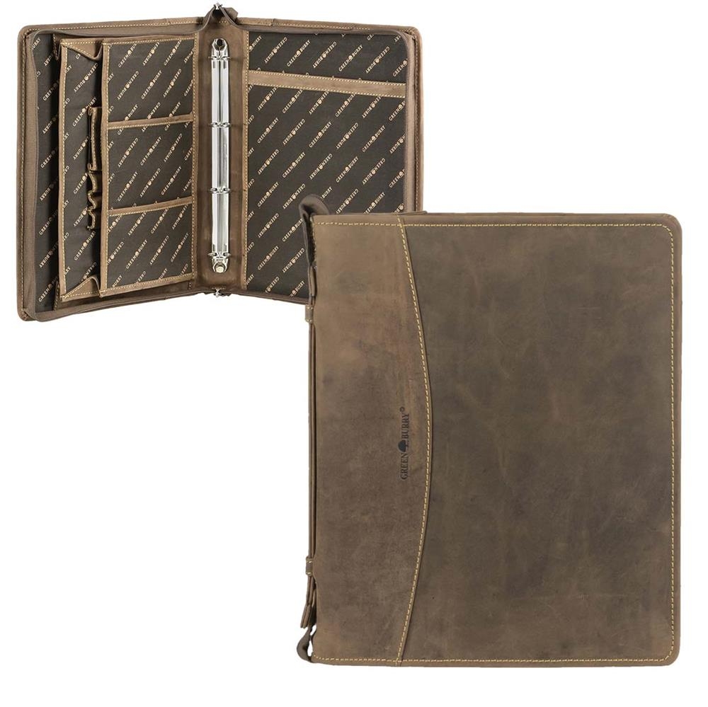 Greenburry Schreibmappe Leder A4 braun Orgamappe Konferenzmappe Ringbuchmappe antik Vintage 1746-25