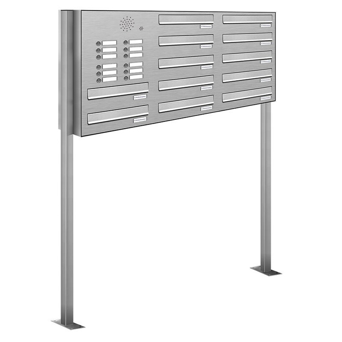 AL Briefkastensysteme 12 Fächer Premium Edelstahl Stand Briefkasten Anlage mit Klingeln, Post A4, robust, wetterfest, Artikelnummer: 132V12DZS3KS