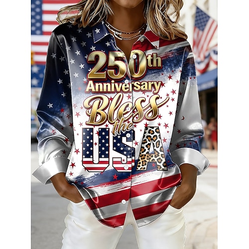 Giorno dell'Indipendenza Americana Per donna Camicia Grafico Bandiera Vintage Elegante Moderno Manica Lunga Colletto a Camicia Top Regolari Quotidiano Ferie Blu Bianco Estate Primavera