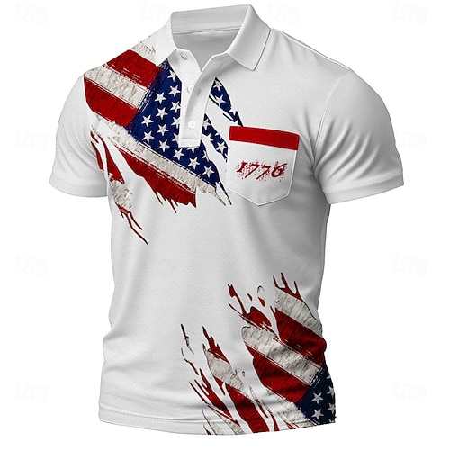Giorno dell'Indipendenza Americana Per uomo Bandiera Americana Polo Manica Corta Magliette polo Camicie con Colletto Casual All'aperto Athleisure Abbigliamento quotidiano Bottoni Tasca Stampa 3D