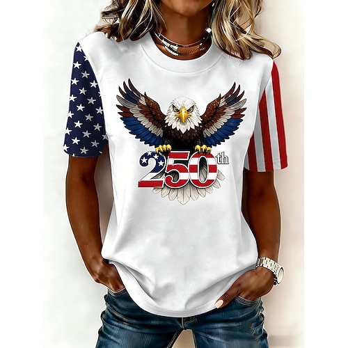 Camicia Patriotica Americana 250° da Donna Grafica Bandiera USA Vintage Tropicale Giornata Tops Regolari Giornata Stampa Rossa Primavera