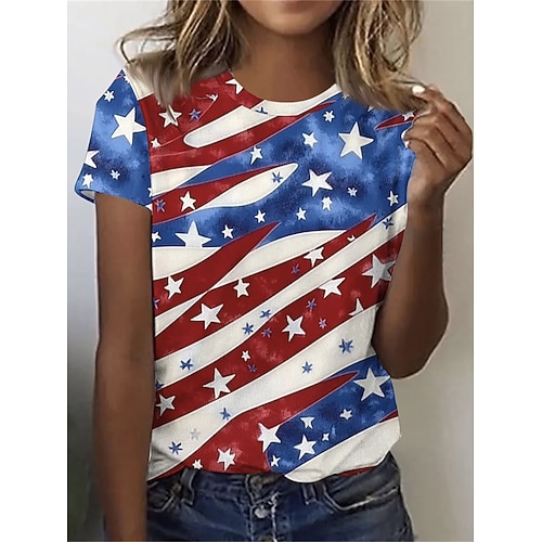 Giorno dell'Indipendenza Americana Per donna Maglietta Stampato Grafico Bandiera Elegante Classico Casual Manica Corta Girocollo Top Regolari Quotidiano Blu Rosso Rosso / blu Estate Primavera