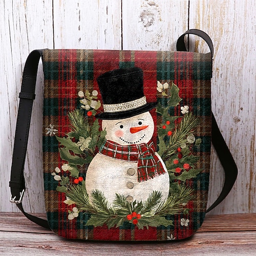 Borsa a tracolla natalizia da donna con pupazzo di neve - stampa con pupazzo di neve e fiocco di neve per lo shopping natalizio, le feste di Natale e le gite invernali
