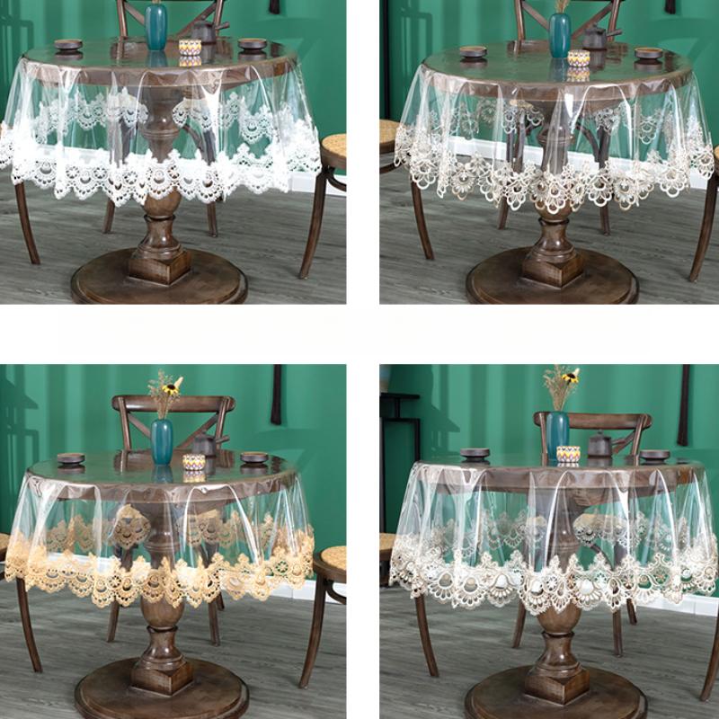 PVC Clear Dining Table Cloth Waterproof Washable Plastic Tablecloth Rectangular Soft Glass Lace Embroidery Tea Table Cover Mat