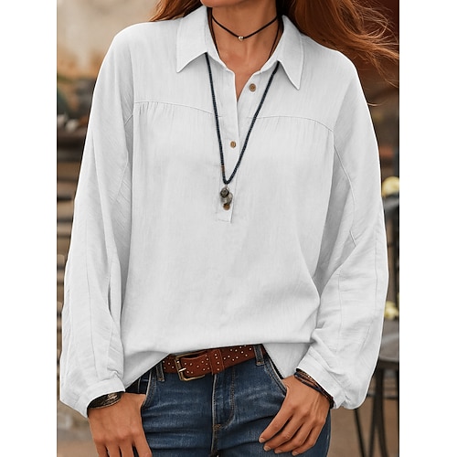 Per donna Camicia Camicie di lino Blusa Tinta unica Vintage Elegante Moderno Manica Lunga Colletto a Camicia Top Regolari Quotidiano Ferie Uscire Blu Nero Rosso Verde Albicocca Estate Primavera