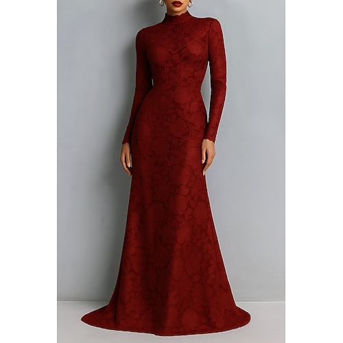 Linea ad A Lunghezza al pavimento Abito da Sera Abito formale Elegante Quotidiano Abiti semi formali Manica 3/4 Collo Alto Festa in giardino Matrimonio Organza Jacquard con Stampa floreale