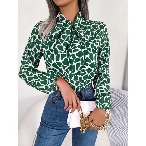 Per donna Camicia Blusa Top in chiffon Nodo frontale Stampato Grafico Astratto Elegante Classico Moderno Manica Lunga Cravatta al collo Top Regolari Quotidiano Ferie Uscire Rosso Blu marino Verde