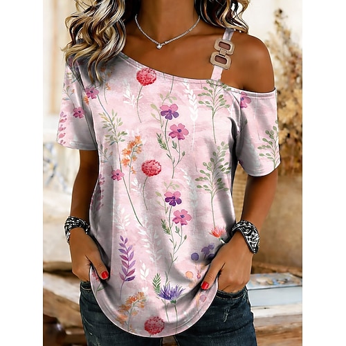 Per donna Maglietta Asimmetrico Floreale Grafico Vintage Tropicale Hawaiano Manica Corta Monospalla Collo asimmetrico Top Regolari Quotidiano Sportivo Uscire Giallo Rosa Viola Verde Estate Primavera