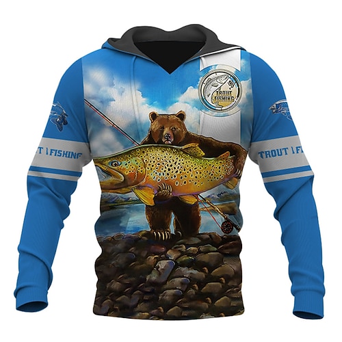 Per uomo Grafico Animale Pesce Felpa con Cappuccio Felpe con cappuccio Felpa Streetwear Designer Casual Grande e Alto Manica Lunga Con Cappuccio Sport Outdoor Quotidiano Khaki chiaro. Nero Blu