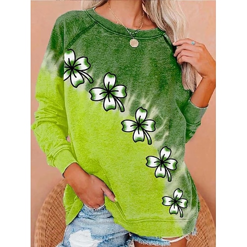 Felpa da donna per il giorno di San Patrizio Graphic Floreale Moda Casual a maniche lunghe Collo tondo Tops normali Street Dailywear Stampa Blu Viola Verde Primavera Autunno Inverno