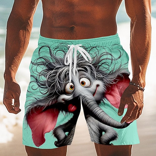 Per uomo Cartoni animati Elefante Divertente Costumi da bagno Pantaloncini da mare Pantaloncini da Surf Misura del girovita medio Hawaiano Vacanza al Mare Tasche Laterali fodera in rete Coulisse