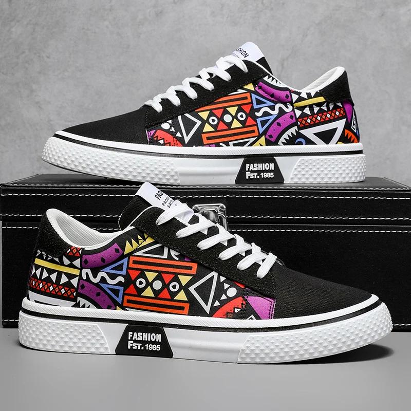 Sommer Nye Herre Graffiti Trykkmønster Canvas Sko Pustende Casual Slip On Gå Sneakers Fottøy Flats cm