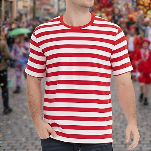Costume di Carnevale 2026 Carnevale T-shirt Camicia a righe Bianco e Rosso A strisce Adulti Per uomo Carnevale Casuale Feste Costume di Carnevale facile Vestirsi