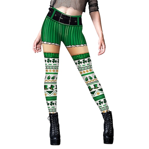 San Patrizio 2026 Trifoglio Irlandese fortunato Carnevale Pantaloni Leggings Cosplay Adulti Per donna Giorno di San Patrizio Casuale Feste Costume di Carnevale facile Vestirsi