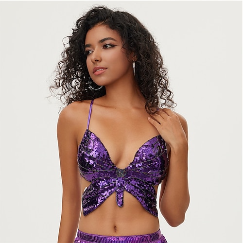 Martedì Grasso 2026 Farfalla Carnevale giacca Bralette Sexy Paillettes Adulti Per donna Carnevale martedì grasso Carnevale di Rio Feste Performance Costume di Carnevale facile Vestirsi