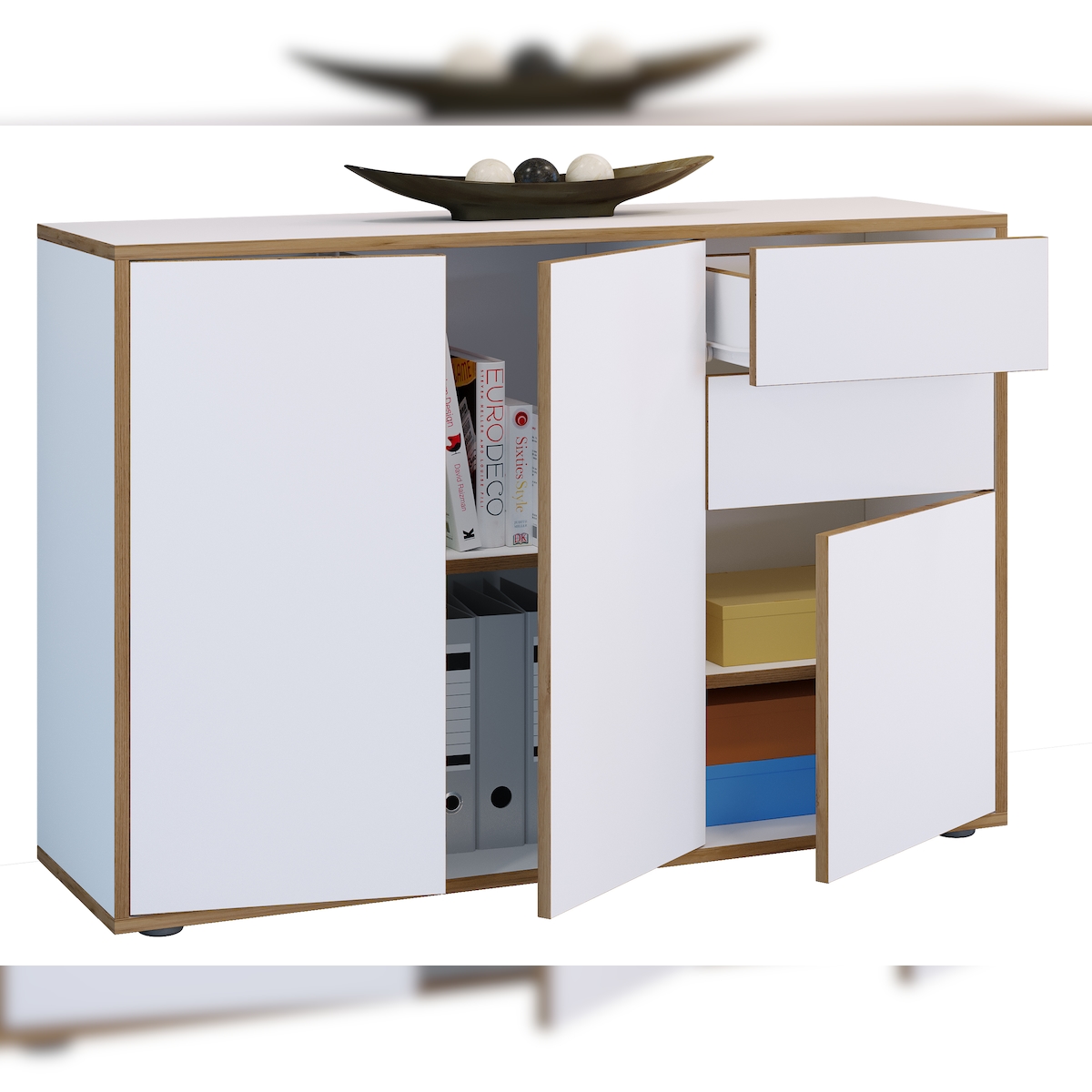 Kommode BORCHARDT MÖBEL "Haama, modern, grifflos, Metallfüsse, praktisch, 2 Türen", kaschmir, B:93cm H:80cm T:35cm, Holzwerkstoff, Sideboards, Kommode, Push-To-Open, verstellbare Einlegeböden, viel Stauraum, Breite 93cm kaschmir B/H/T: 93cm x 80cm x 35cm,