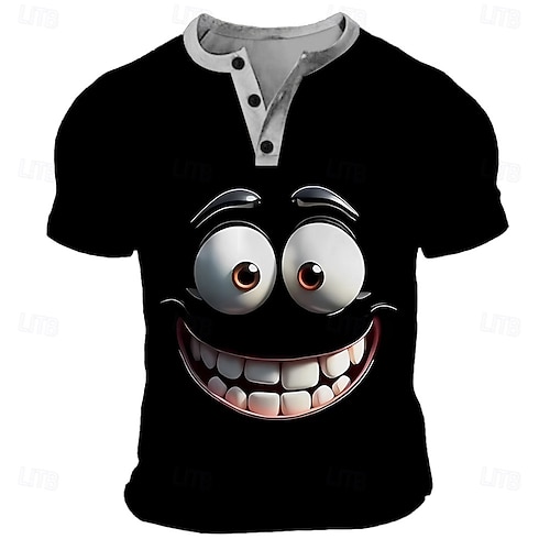 Per uomo Cartoni animati Volto umano Maglietta Maglia Henley Manica Corta Designer Retrò Vintage Casual Casuale Quotidiano Streetwear Estate Primavera Nero Blu Verde Rosso Henley Maglietta Henley