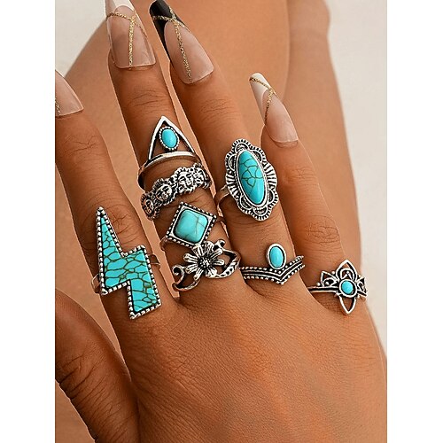 set di anelli turchesi da donna - set multi-pezzo di gioielli vintage in lega bohémien per le vacanze delle donne, le vacanze al mare e l'uso quotidiano