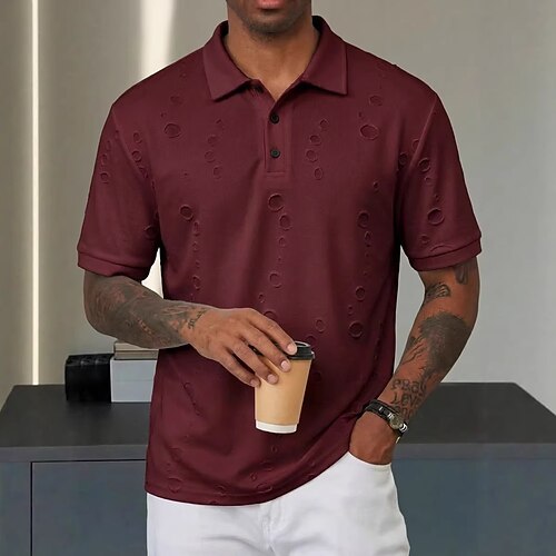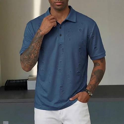 Per uomo Testurizzato Maglia da golf Affari Attivo Classico Manica Corta Moda Moderno Tinta unica Bottoni Estate Primavera Vestibilità regolare Blu marino Blu reale Verde Testurizzato