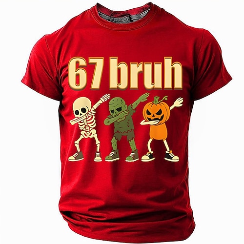 Divertente Maglietta da uomo a maniche corte '67 Bruh' Grafica di Teschio Zombie Zucca Dabbing