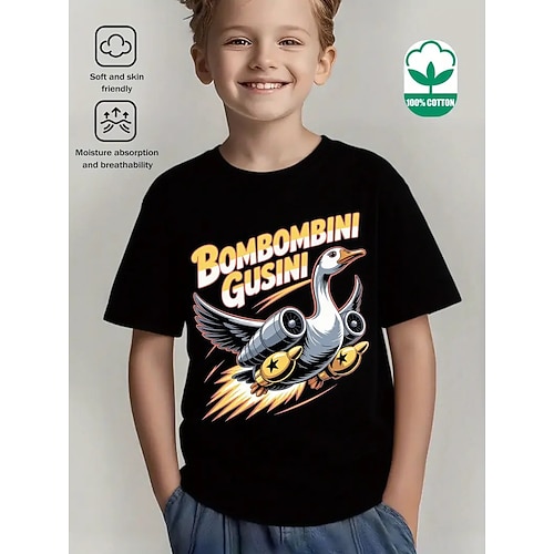 Cotone Bambini Ragazzi Blu Nero Bianco Bombombini Gusini Grafico Maglietta Blusa Girocollo Manica Corta All'aperto Abbigliamento Quotidiano Moda Streetwear Designer Stampa Estate