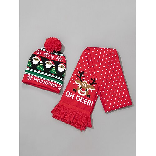 Set di cappello e sciarpa natalizi da donna in maglia, motivo renna, molteplici fantasie, comodo e festoso per feste e abbigliamento invernale