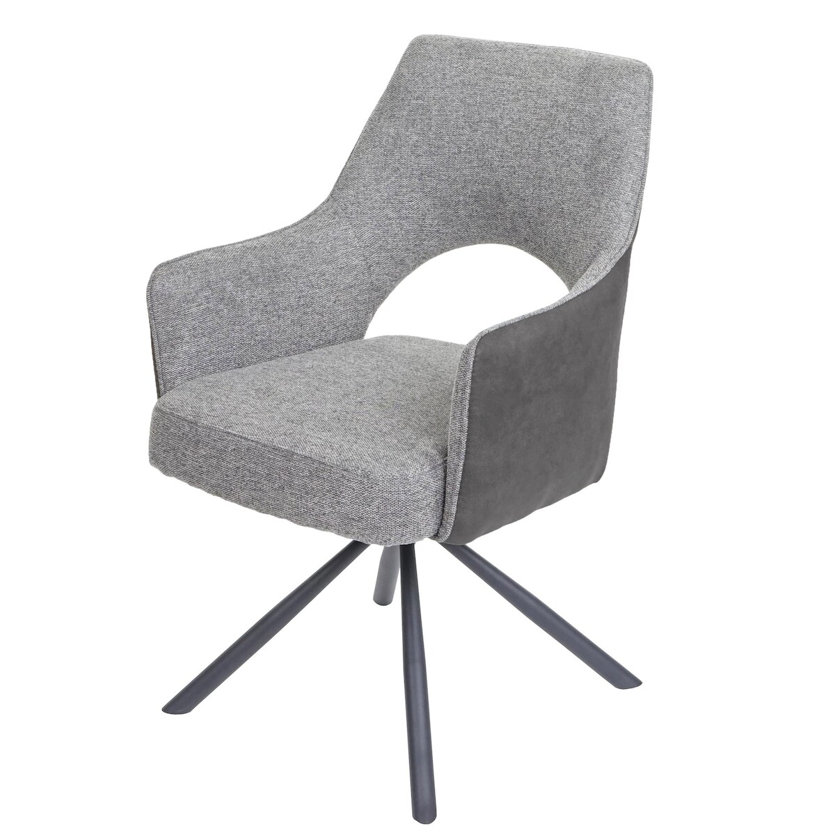 Mendler Esszimmerstuhl HWC-K30, Küchenstuhl Lehnstuhl, drehbar Auto-Position, Stoff/Textil MVG ~ grau-dunkelgrau